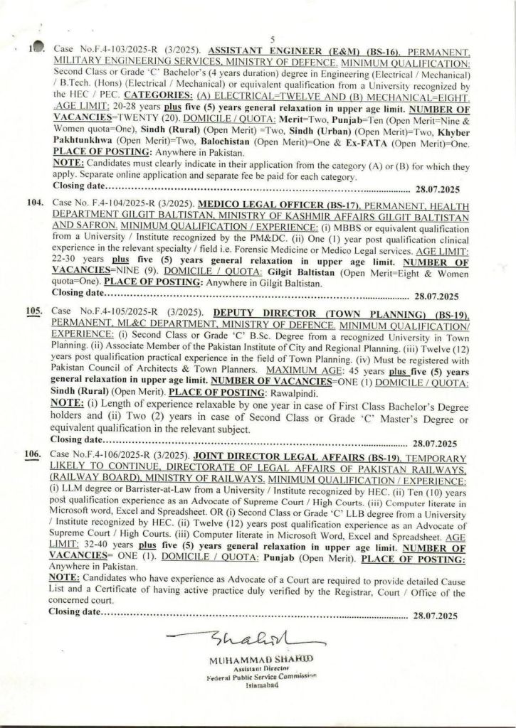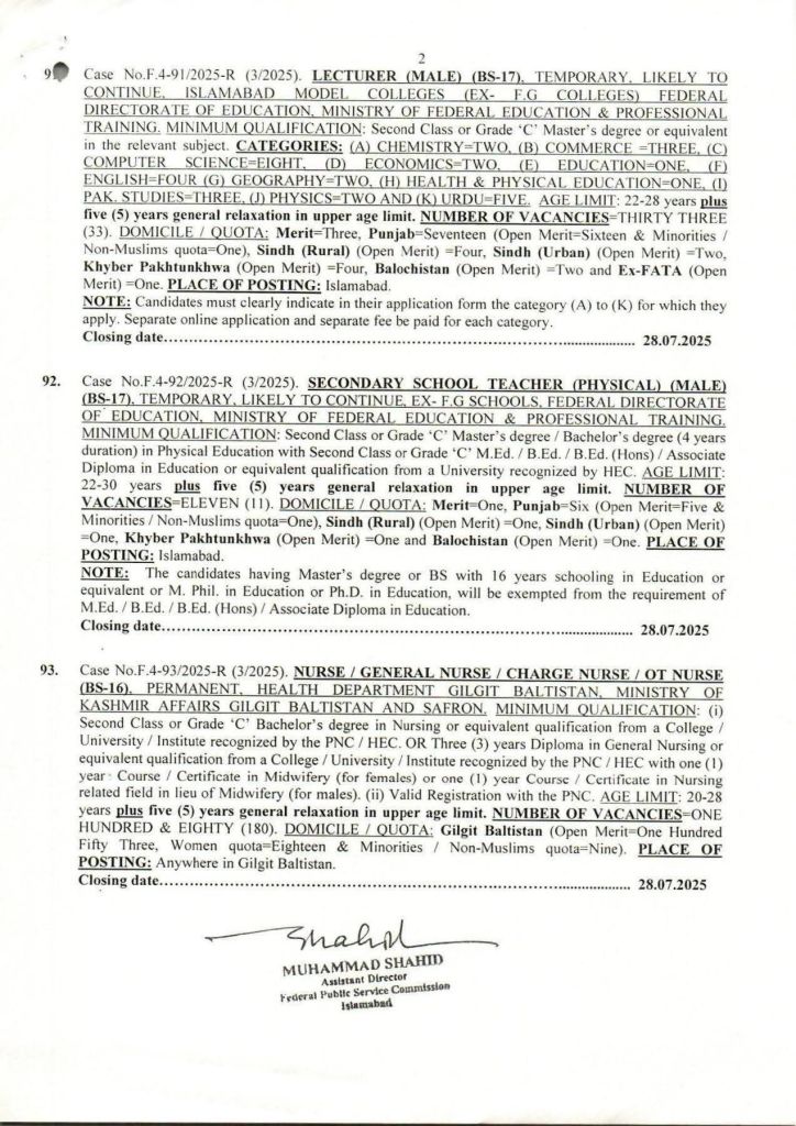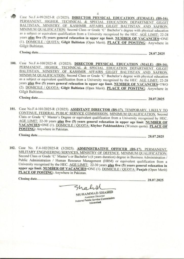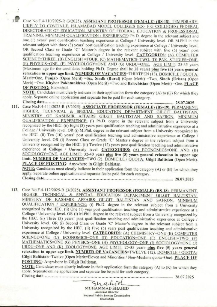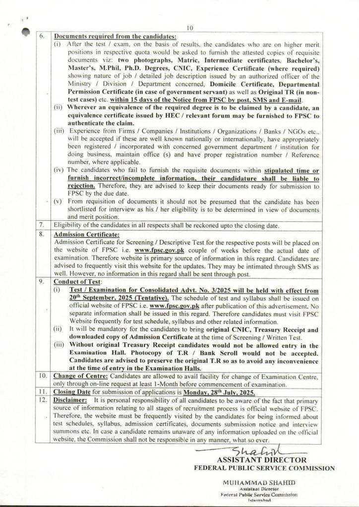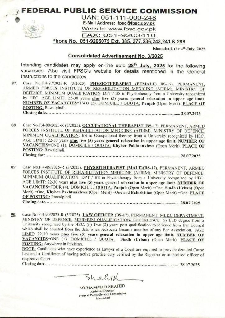 FPSC Advertisement number 03/2025