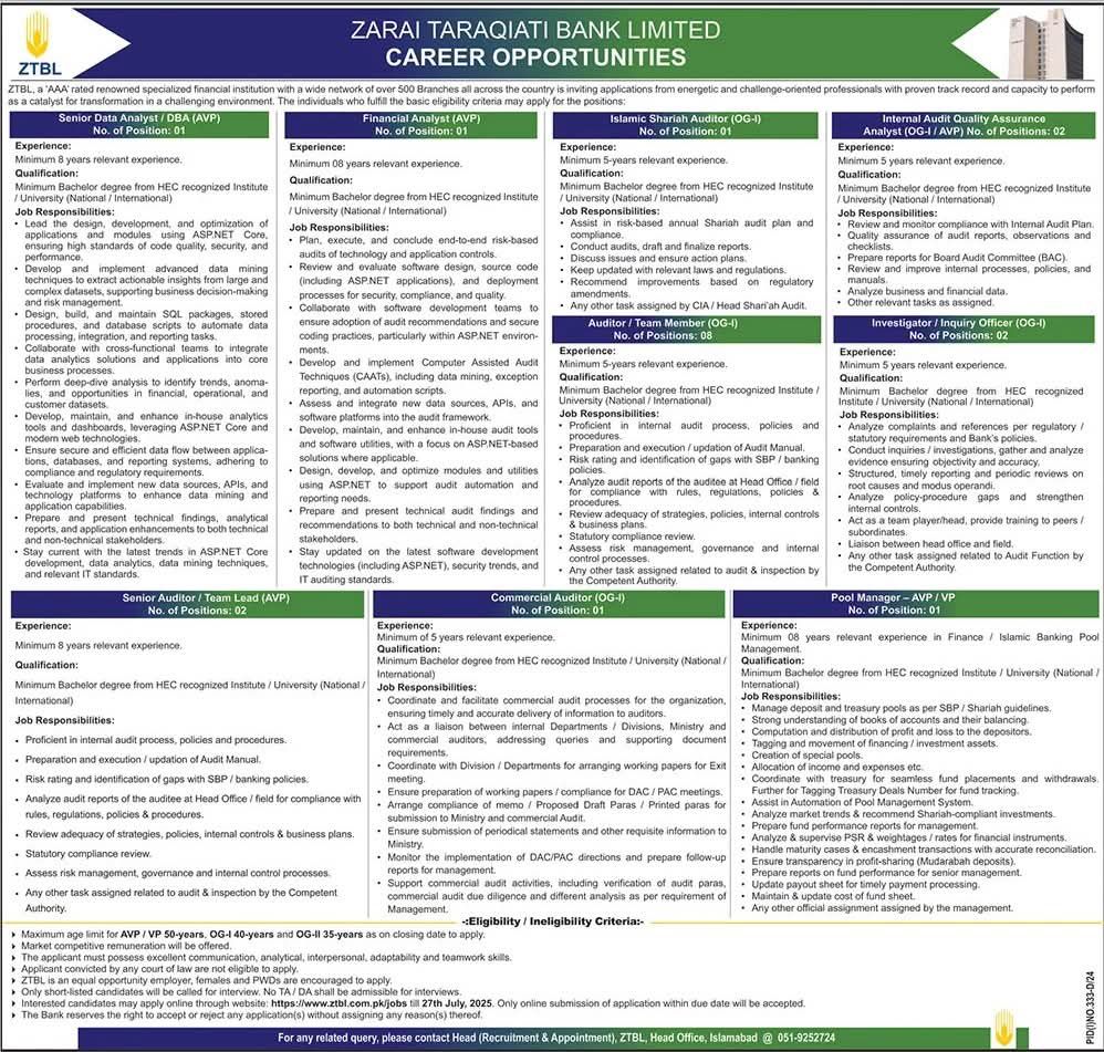 Zarai taraqiati bank limited announced multiple vacancies apply now,