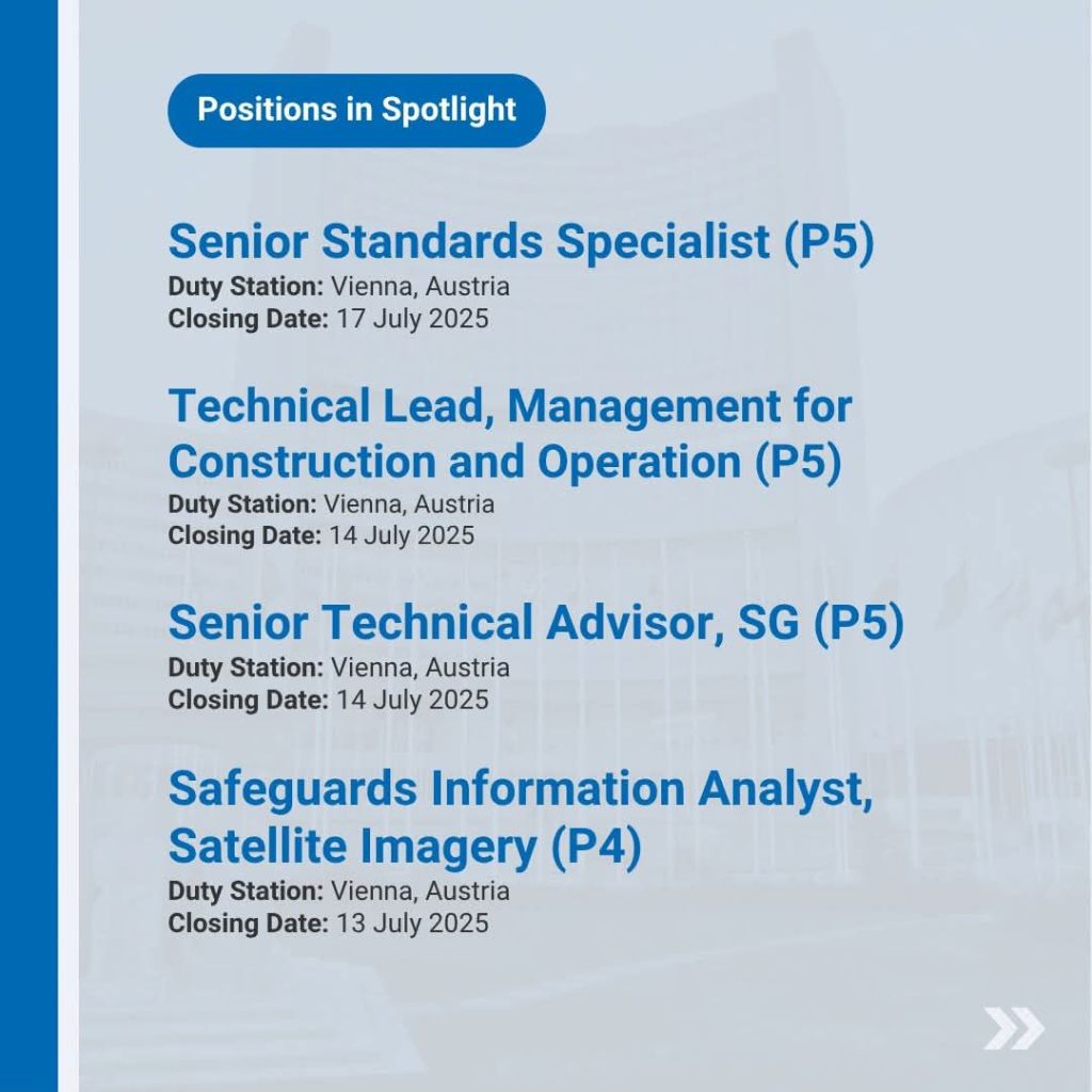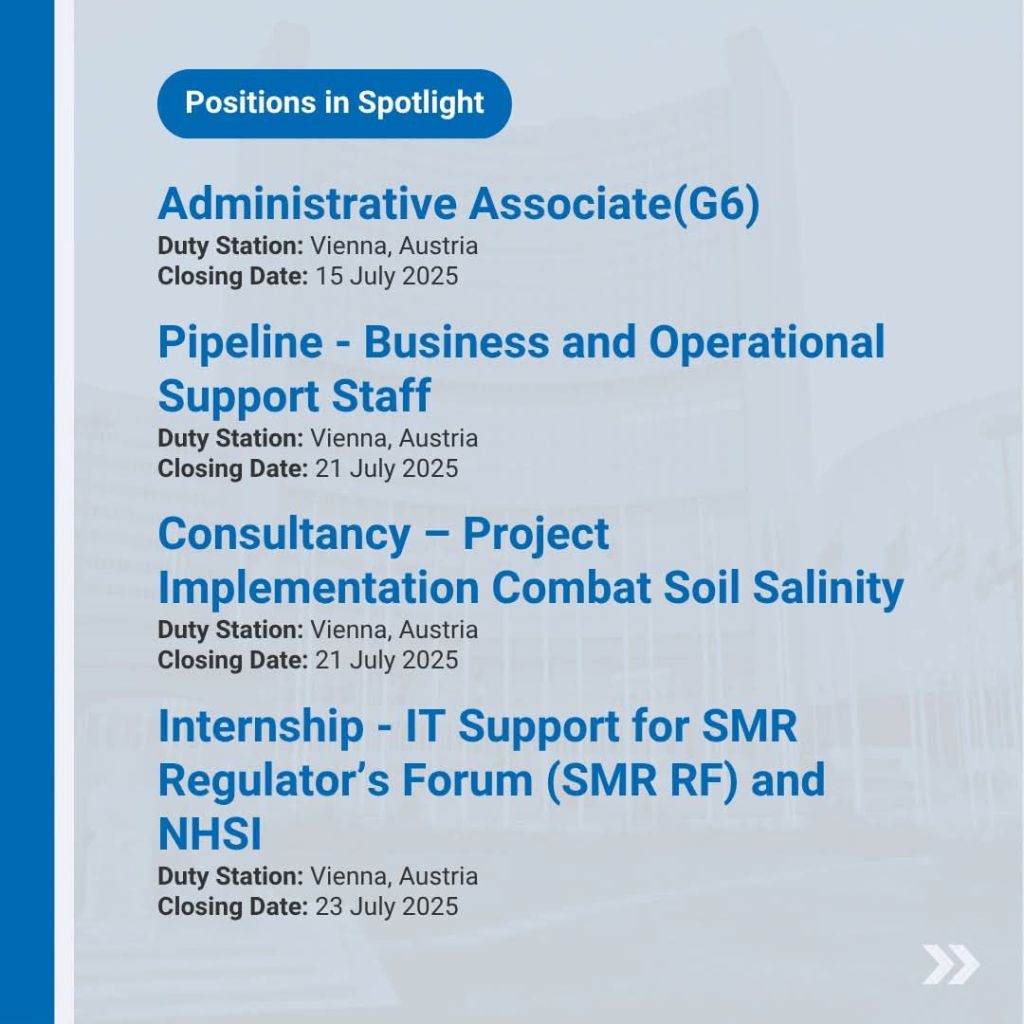 We are hiring for many positions at the IAEA! Check all positions that are closing soon and apply before the closing date.